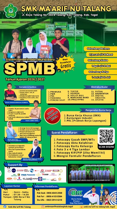 Info Pendaftaran SPMB SMK Ma arif NU Talang